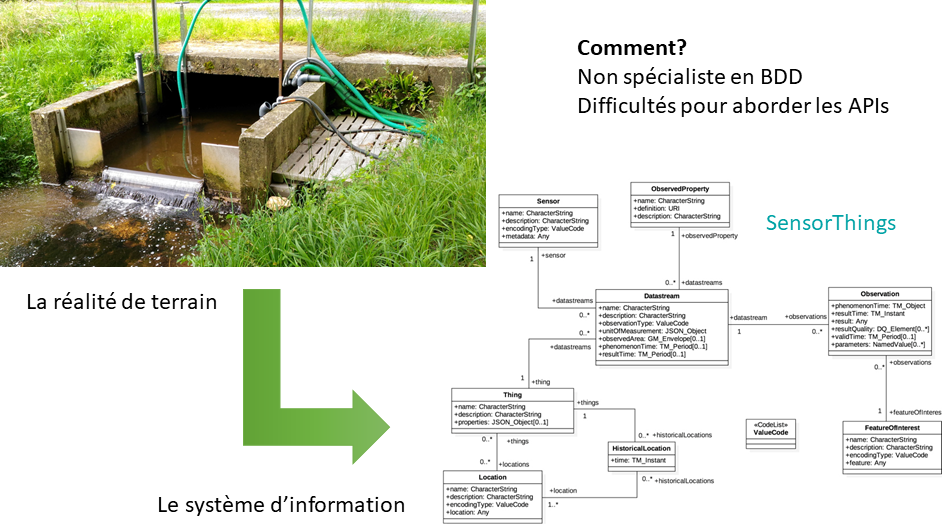 Bref rappel du contexte : l’observatoire ORE Agrhys dispose déjà d’un système de données que nous voulons faire évoluer vers le standard OGC Sensorthings. Ce transfert nécessite 2 étapes, l’import des données historiques et actualisation des nouvelles données.